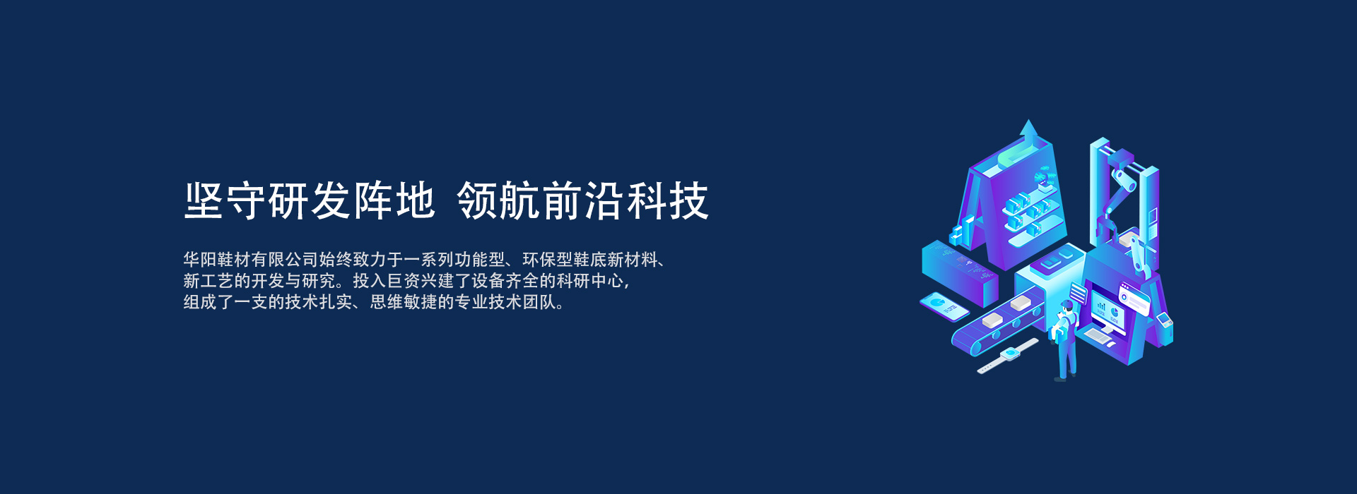 華陽鞋材有限公司始終致力于一系列功能型、環保型鞋底新材料、新工藝的開發與研究。投入巨資興建了設備齊全的科研中心,組成了一支的技術扎實、思維敏捷的專業技術團隊。全球領先的材料科學分析儀器和檢測設備,形成了從材料研發、新品開發、實驗測試、技術轉移到規模生產的一體化作業流程,為產品的生產提供了有力的品質保障。